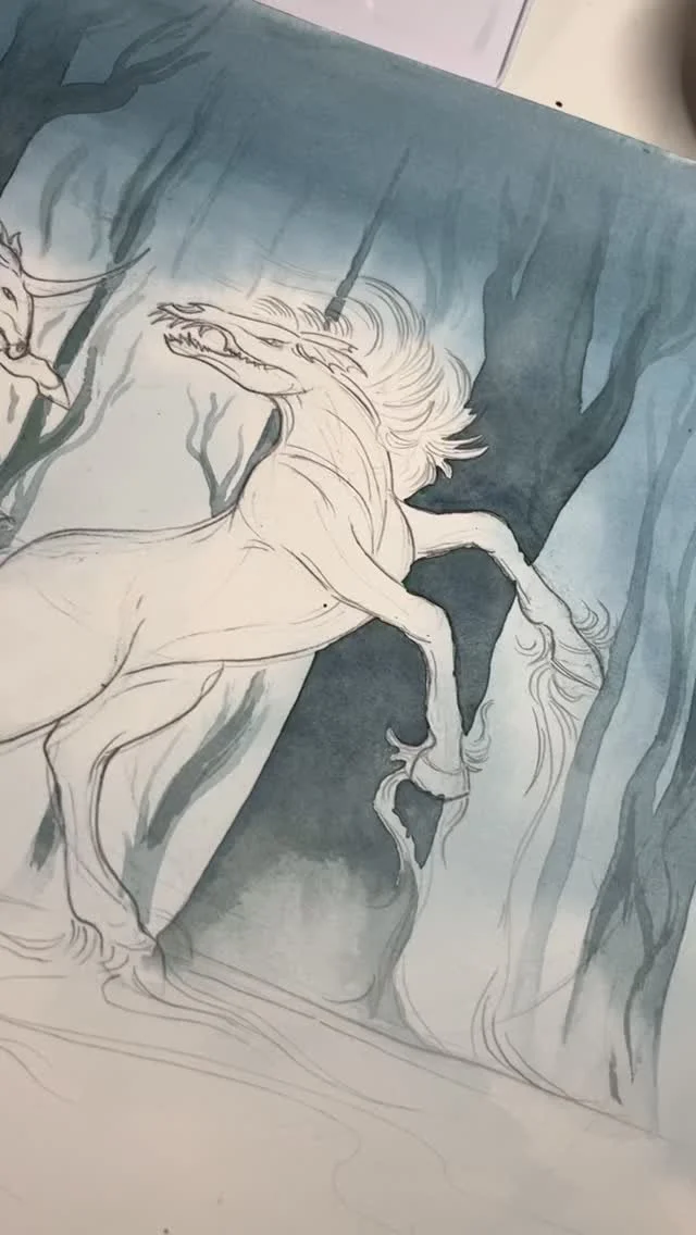 Madison is a wildlife illustrator and creature artist in the South West of England. Her focus is on capturing the wild and whimsical scenes that nature can convey, and to encourage a curiosity towards the natural world. She uses a mix of traditional media to bring a natural feel to her work. Growing up, Madison found an interest in nature through exploring the fields and woodlands that surrounded her home. She drew inspiration from stories, such as Watership Down, which continue to influence her artwork today.