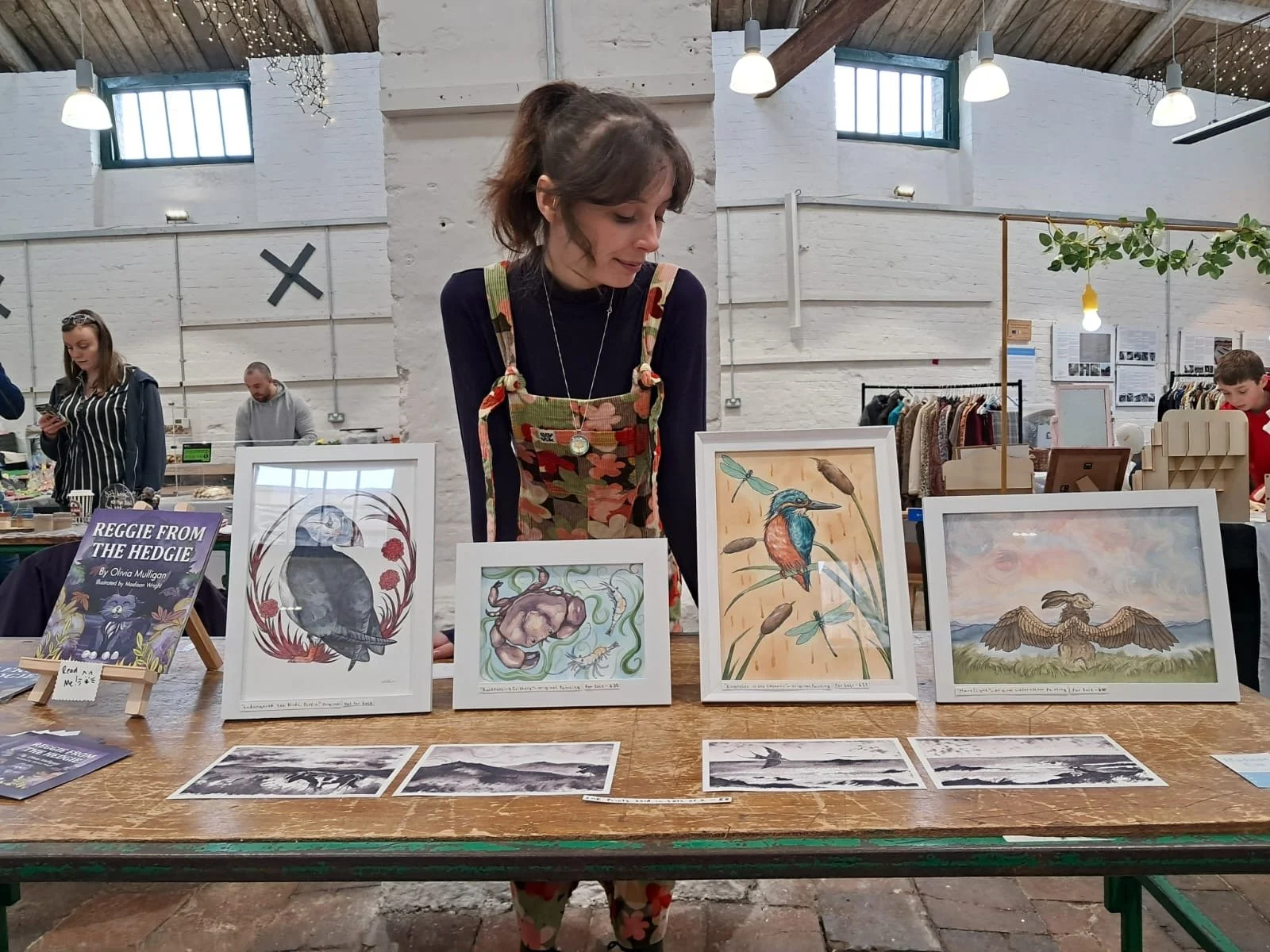 Madison has worked on two children’s books, ‘Reggie From The Hedgie’ (2024) and ‘Reggie On A Sledgie’ (2025). She has created a large-scale marine life mural for Sole Of Discretion (2021) and worked on merchandise illustrations for All You Can Sea (2025). She also curates a range of her own products that are displayed and sold online and at regular events.